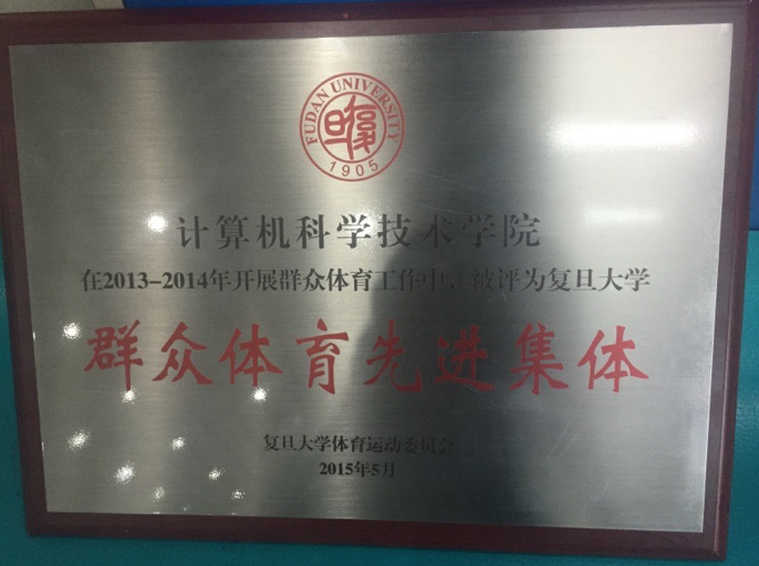 在庆祝复旦大学建校 110 周年之际,我院还获得了 2013-2014 年度群众体育先进集体,充分体现了我院全体教职员工积极向上、奋发图强的体育运动精神。身体健康是科学研究的基础保证,相信有学院领导的大力支持,全体教职员工的共同努力,学院的体育运动事业会越来越好。