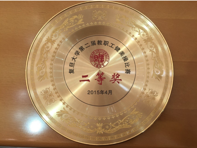 4 月 21 日,第二届复旦大学教职工健美操比赛在正大体育馆举行,全校含附属医院共有 23 个队伍参加了比赛。我院健美操队通过全力拼搏,共同努力最终斩获比赛二等奖。5 月 15 日复旦大学第五十五届田径运动会暨首届教工趣味运动会开幕式上,由校领导为获奖单位颁奖。金灿灿的奖盘上凝聚了计算机健儿们的汗水和付出,荣誉来之不易,作为理工科院系,我们不仅希望自己能在学术界成为佼佼者,在体育比赛上也可以崭露头角。