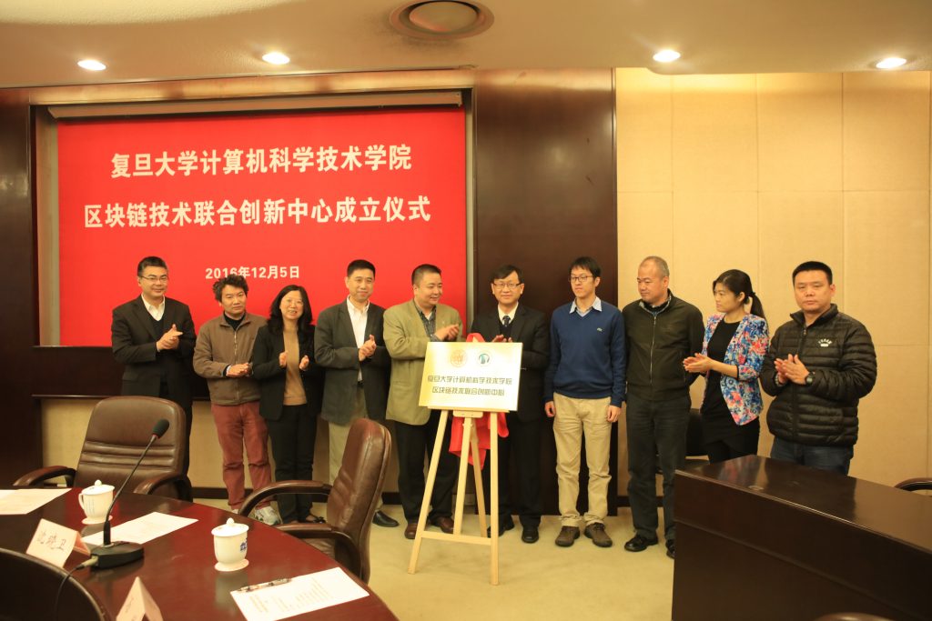 2016 年 12 月 5 日,复旦大学计算机科学技术学院 “区块链技术联合创新中心” 正式揭牌成立。成立仪式邀请到复旦大学副校长金力院士、IBM 中国研究院院长沈晓卫博士出席,复旦大学计算机科学技术学院院长王晓阳教授,计算机科学技术学院许晓茵书记共同出席了会议。学院相关领域师生一同参加了成立仪式。