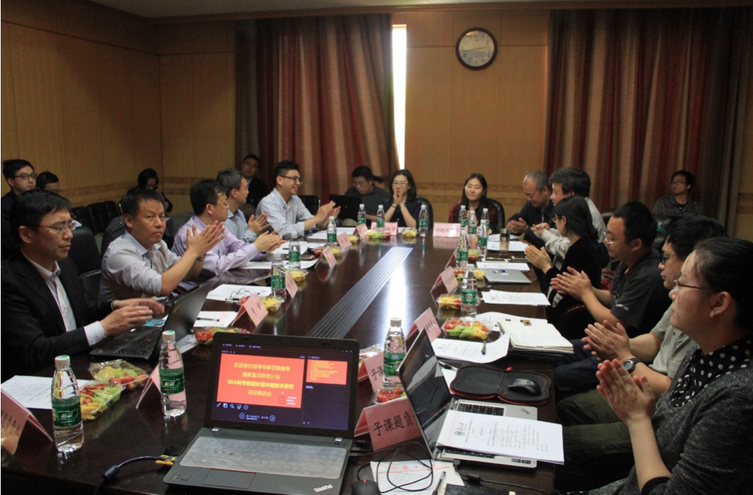 会议由汪卫副院长主持。首先,刘爽代表 SKA 中国办公室感谢中方 SDP 联盟各成员 SKA 项目的大力支持,SKA 目前处于政府间谈判和建设准备阶段的关键时期,希望课题组在项目研发的同时,继续积极参与 SDP 国际工作包联盟的设计工作,为 SKA 办公室的各项工作提供有力支持。接着,彭勃介绍了 SKA 发展的历程以及 SKA 的科学目标。然后,范仁华代表复旦大学对大家的到来表示热烈的欢迎,感谢科技部国际合作司、科技部项目管理中心、科技部 SKA 办公室以及各位专家和项目承担单位对复旦大学长期以来的支持,表示复旦大学将一如既往支持 SKA 项目在复旦大学的研究开发工作。接着,承担单位负责人分别介绍了各自研究进展、承担国际联合体工作进展以及下一步的工作展望,如子课题 1 负责人池明旻介绍了 “面向 SKA 科学大数据的分布式处理系统” 的研究进展,并介绍了复旦大学牵头的 SDP 国际联合体任务的完成情况,在相同情况下国内团队对 Spark 平台的优化性能大大优于剑桥大学团队。最后,项目负责人斯雪明教授对整个项目研究进展以及在国际联合体承担的工作进行了总结,并部署了下一步研发工作。
