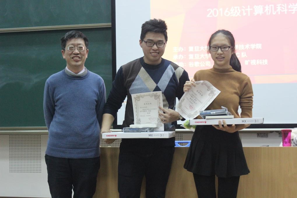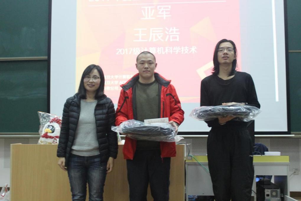 闭幕式由ACM-ICPC队教练孙未未教授主持,赵一鸣副院长和腾讯公司的两位嘉宾为获奖选手颁发奖品和证书。其中颁奖环节的奖项设置有:冠军、最佳女选手;亚军、季军;一等奖(4 - 10名选手)。