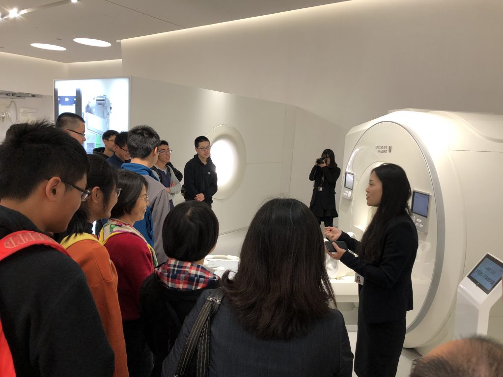 参观的第二站来到上海联影医疗科技有限公司。联影医疗是从事高端医疗影像设备及其相关技术研发、生产、销售的高新技术企业,是目前国内唯一一家产品线覆盖全线高端医疗影像设备,并同时拥有全球领先的核心技术的集团。 在考察中,学院师生首先通过影片了解我国医疗影像事业筚路蓝缕的发展历程,了解到以联影医疗为代表我国医疗设备企业突破技术瓶颈、追赶世界潮流的奋斗故事。随后,在公司党总支书记的带领下,大家参观了联影的医疗影像设备系列产品,了解到这些设备与世界先进水平之间的优势和特点。