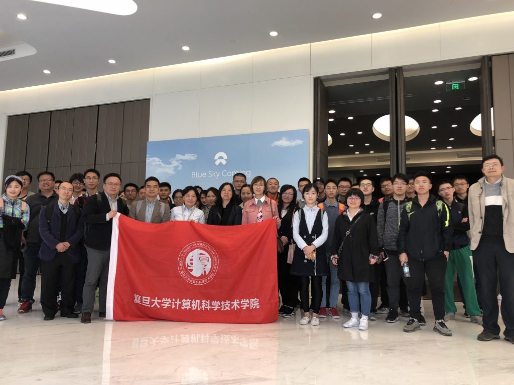 4 月 17 日,计算机科学技术学院 2017 级技术科学实验班 1 班学生及学院部分教师党员前往嘉定区考察,参观当地新兴企业。