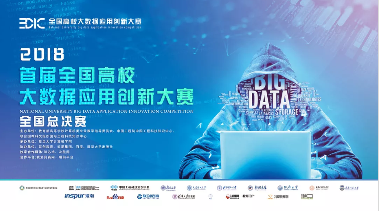 2018 年 9 月 15-16 日,2018 首届全国高校大数据应用创新大赛全国总决赛在复旦大学举行。本次大赛由教育部高等学校计算机类专业教学指导委员会、中国工程院下属中国工程科技知识中心、联合国教科文组织国际工程科技知识中心联合主办,复旦大学计算机科学技术学院承办,浪潮集团、百度、联创教育和清华大学出版社等单位或企业协办。中国工程科技知识中心、浪潮集团、百度和联创教育等单位为本届竞赛提供数据源、技术服务和平台支持。