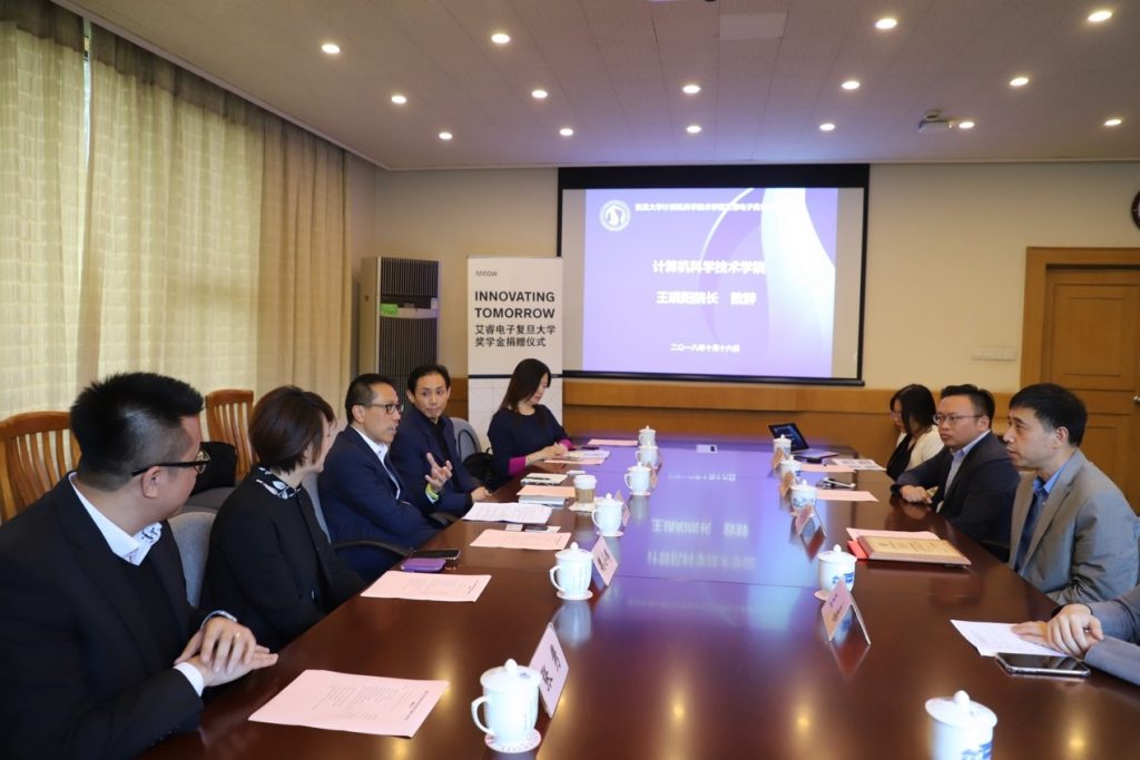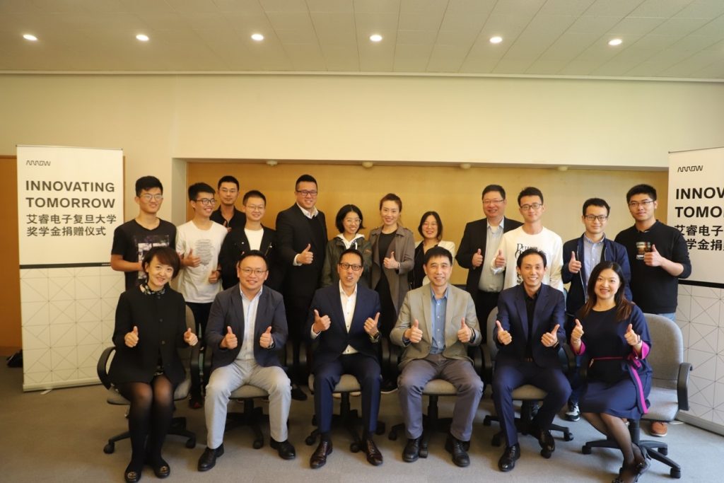 2018 年 10 月 16 日下午,计算机科学技术学院艾睿电子奖学金捐赠仪式在邯郸校区逸夫楼二号会议室隆重举行,艾睿电子亚太区总裁余敏宏、上海分公司经理马秀彬、中国区人力资源总监魏小鹏、企业传讯亚太区主管龚意、业务发展经理张隽,及计算机科学技术学院院长王晓阳、党委副书记厉家鼎及教师和学生代表共同出席了捐赠仪式。仪式由厉家鼎老师主持。