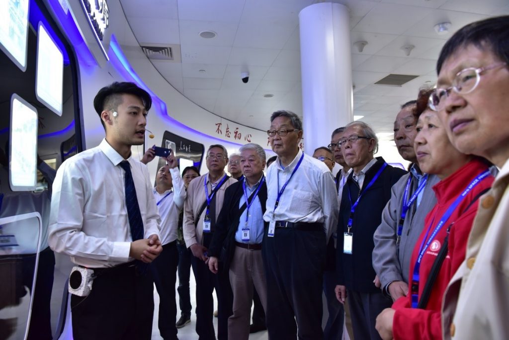 党员老师们在电信信息生活体验馆内认真听讲解(摄影:赵子正)
