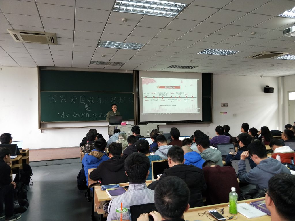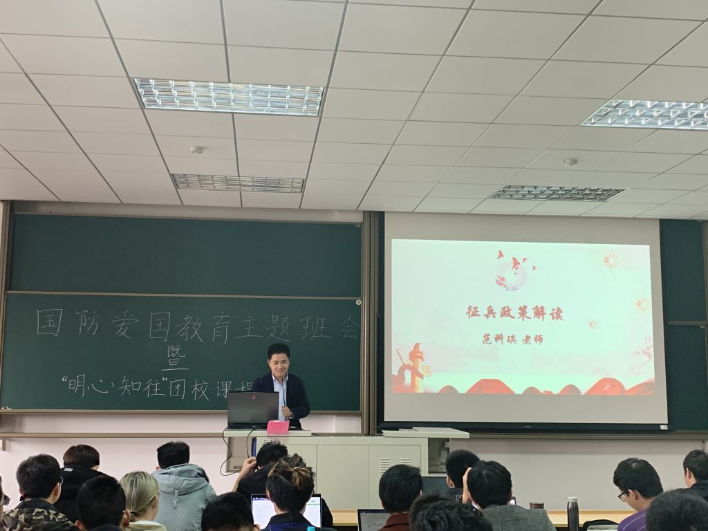 3 月 26 日下午,计算机科学技术学院在张江校区 2108 教室开展了国防教育主题班会暨征兵动员大会,邀请校武装部范科琪老师以及退伍学生雷涛、王昱同学作征兵工作介绍并分享军旅生活体验,计算机学院党委副书记厉家鼎、各班级辅导员、学院适龄学生和 “明心知往” 团校学生参加活动。活动由 2017 级软件工程本科生班负责组织实施。
