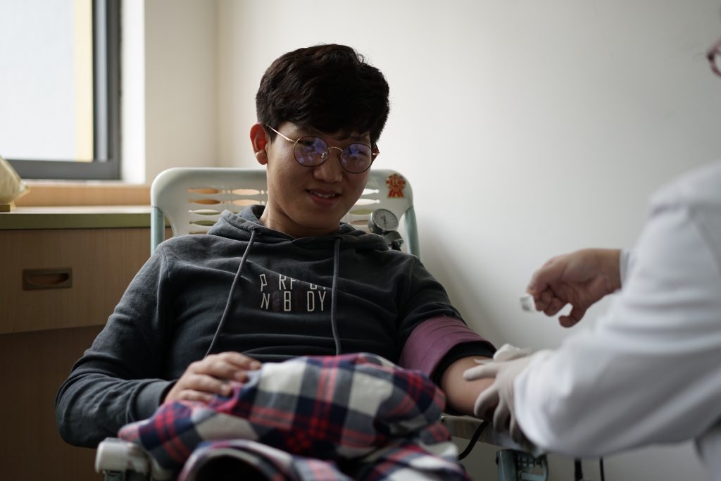在献血的学生中间,有 15 位同学自愿报名参加成份献血,其中 2015 级本科生段雷已经是第二次进行成份献血,今年也是他连续第 4 次参加无偿献血;由于成份献血对身体的要求更高,有些报名的同学没有达到要求不能进行成分献血,但是他们还是坚持参加全血捐献。参与的同学表示,能有机会用自己的爱心和血液为社会贡献出自己的一份力量,挽救更多的生命,感到无比的骄傲和自豪。