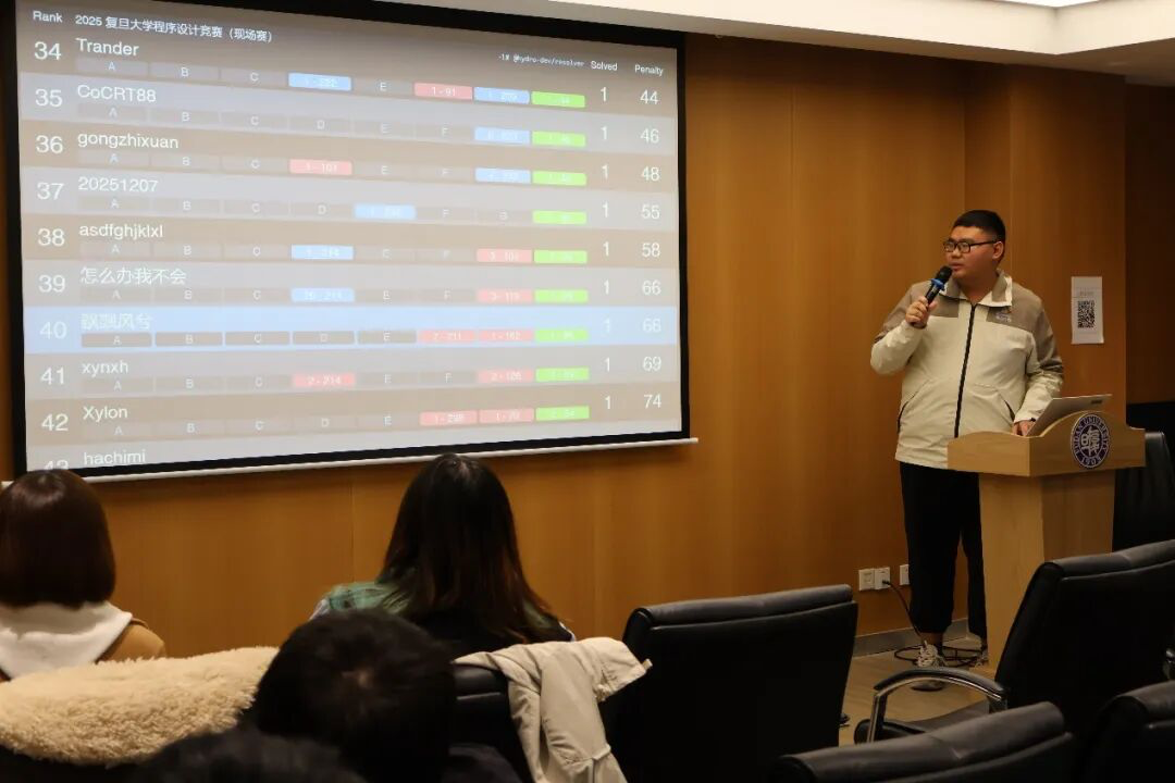 12月7日下午,2025年复旦大学程序设计竞赛在邯郸校区成功举行。本次比赛由复旦大学计算与智能创新学院主办,复旦大学程序设计竞赛队承办。今年程序设计竞赛的网络预选赛参与人数达 170 人。最终,共有来自全校17个不同专业的67名同学通过选拔进入现场总决赛。