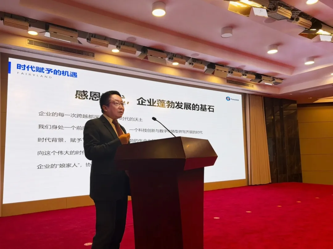 会上,复深蓝软件董事长杨万强代表获奖企业家作交流发言。他以“投身新时代、打造新质生产力、谋求企业高质量发展”为核心,阐述科技创新与产业升级的深刻洞察。强调复深蓝的发展始终与国家战略同频共振。作为改革开放的同龄人,他见证并参与了中国软件产业从萌芽到崛起。杨万强表示,企业的每一次跨越都根植于时代的沃土,新基建浪潮、人工智能发展,为该企业所在的软件行业铺设了“黄金赛道”。