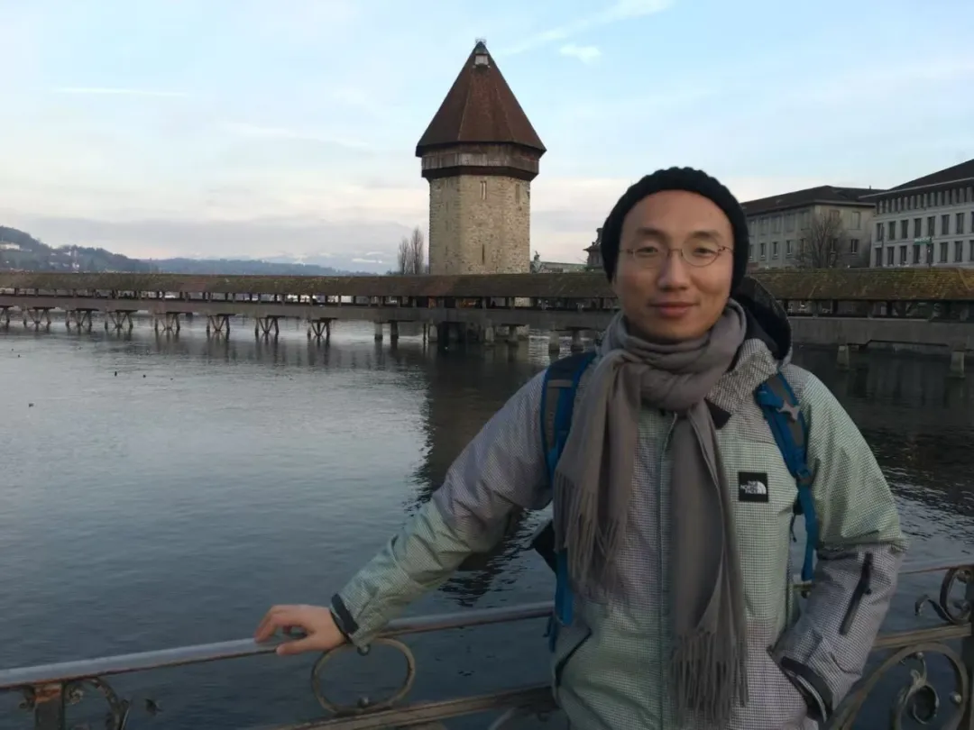 2018年,邱致中在瑞士苏黎世参加行业会议,于附近小镇留影