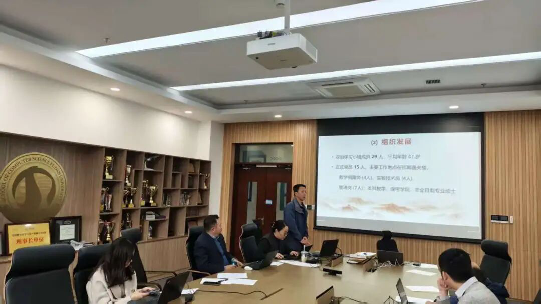熊贇老师汇报了教工第四党支部支委分工、发展党员、学习教育、党建联建活动、谈心谈话和常态问卷收集等情况。教工第四党支部在扎实完成支部日常教育管理的基础上,通过政治学习小组活动凝聚师生,邀请上海市数据科学重点实验室主任肖仰华介绍实验室情况,加强业务工作交流。支部教师在科研奖项获取、人才培养、论坛组织、论文发表等方面取得显著成果,后续将进一步推动支部工作与学科方向重点实验室的高度融合。