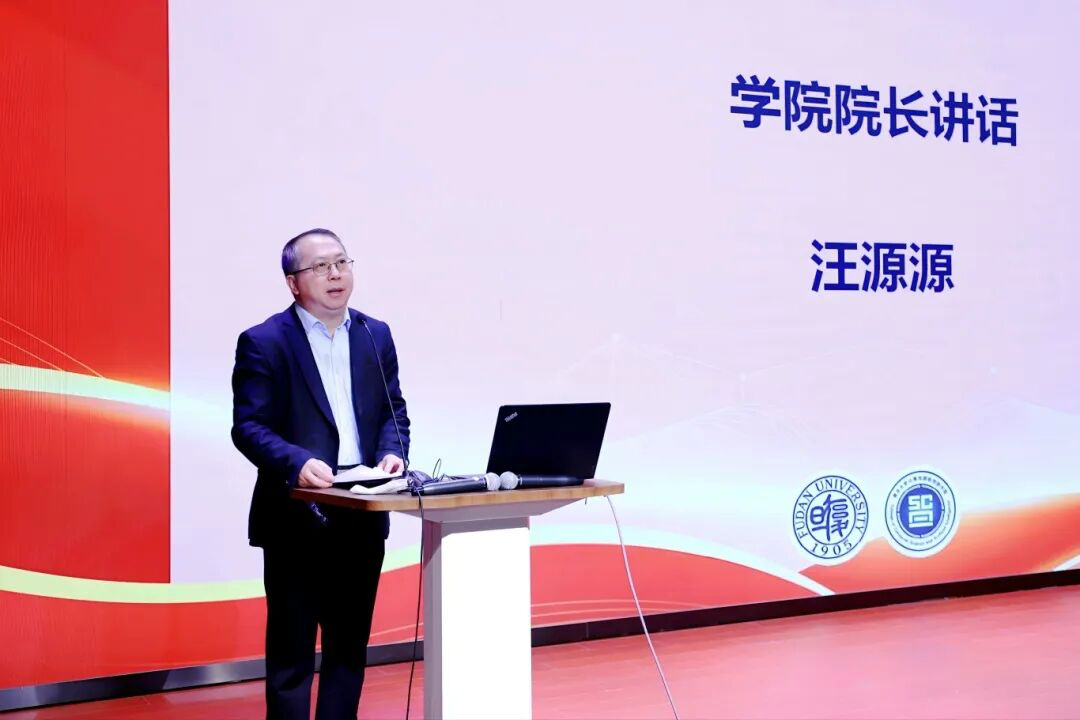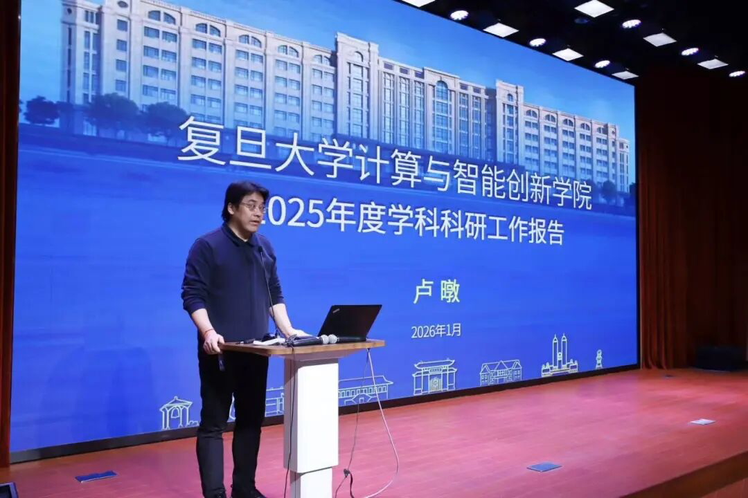 2026年1月6日上午,计算与智能创新学院在江湾校区二号交叉学科楼E1006报告厅召开全院教师大会。学院院长汪源源,党委书记王新,执行院长杨珉,党委副书记邹宏、顾宁,副院长彭鑫、曹瑜、卢暾,退休教职工代表及全体教职工参加会议。会议由曹瑜主持。