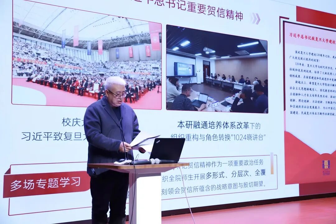 王新在全院大会上就2025年度学院党委工作进行总结并作个人述职述廉。他表示,学院党委始终围绕学校改革与发展的核心任务,切实发挥把方向、管大局、保落实的作用,通过深入研判、周密组织、广泛发动与全力保障,团结带领全院师生党员投身重点攻坚。