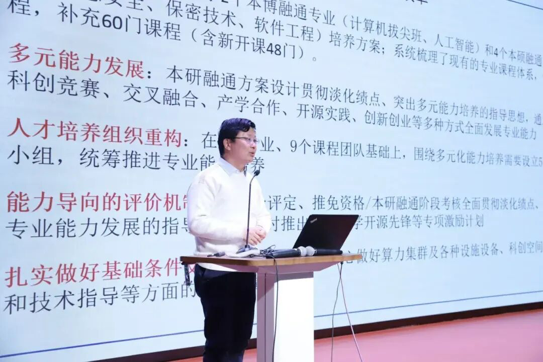 杨珉做学院年度行政工作报告并进行个人述职述廉。他提到,学院在实体化建设上取得显著进展,完成十五五规划、人事制度改革、本研融通及AI大课建设四项重点改革。人才引育、人才培养上、本科生与研究生教学等方面取得了亮眼成绩,多项科研成果获国内外认可。同时,他强调了廉洁奉公,贯彻执行中央八项规定。展望2026年,作为“十五五”规划谋篇布局之年,学院将继续砥砺前行,推动事业发展。
