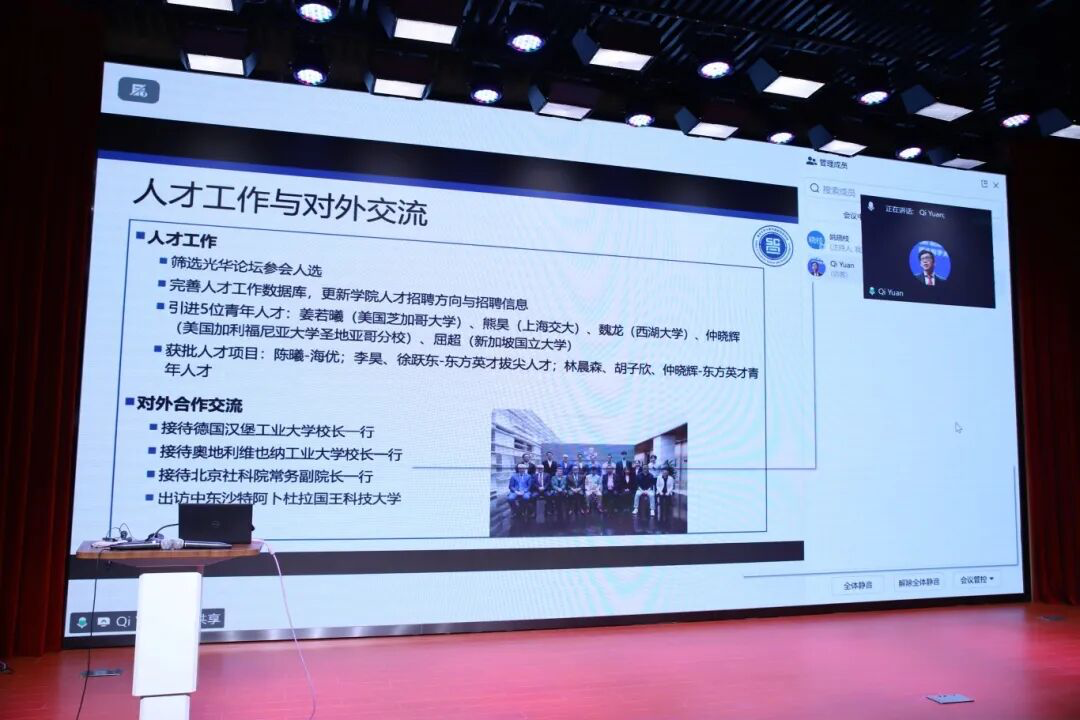 随后,邹宏、顾宁、彭鑫、曹瑜、卢暾、漆远分别就各自分管的招生、学工、教学、行政、科研、人才引进各块工作做述职述廉和年度工作总结。