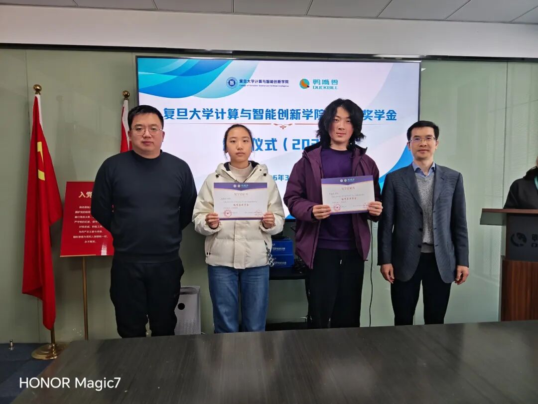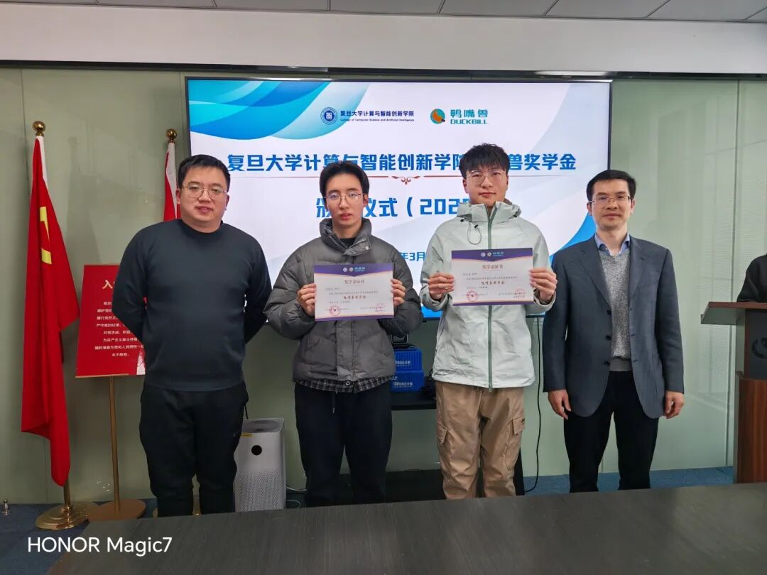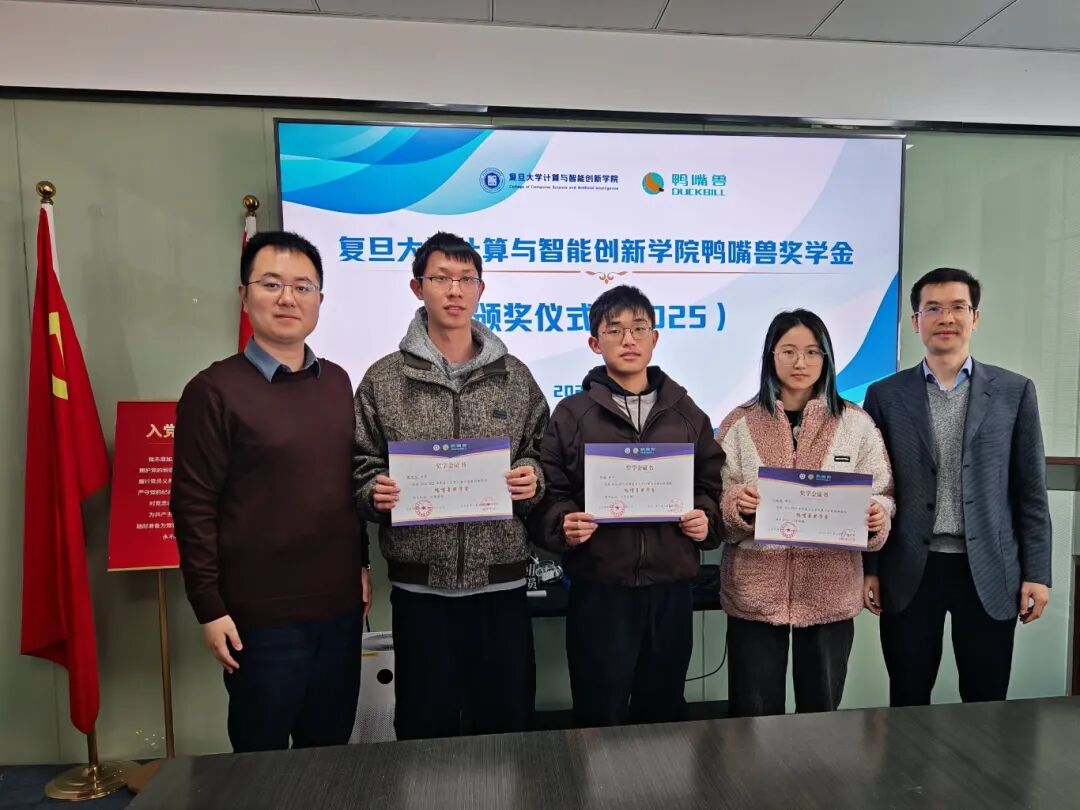 复旦大学计算与智能创新学院鸭嘴兽奖学金颁奖仪式于2026年3月7日在宝杨宝龙广场16楼鸭嘴兽公司珠穆朗玛会议室成功举行。