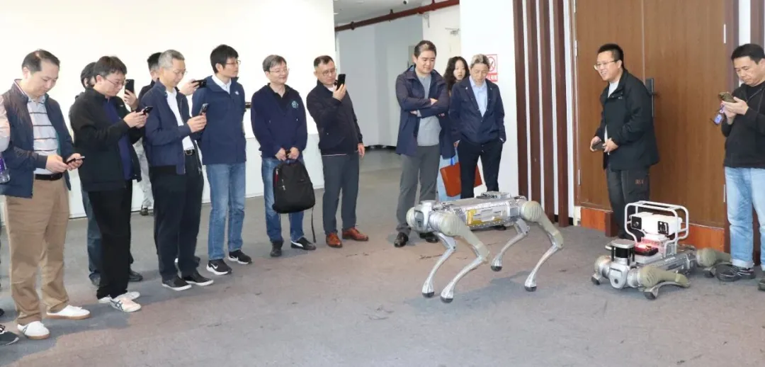 第二天,在杭州高新科创集团合伙人、计算与智能创新学院94级校友王磊的邀请下,大家前往杭州参访了宇树科技。宇树自第一代机器人以来,产品不断迭代升级的发展历程,并和多款机器人、机器狗等进行了人机互动。在互动过程中,校友们与技术人员探讨了宇树科技在具身智能领域的前沿发展和技术突破。
