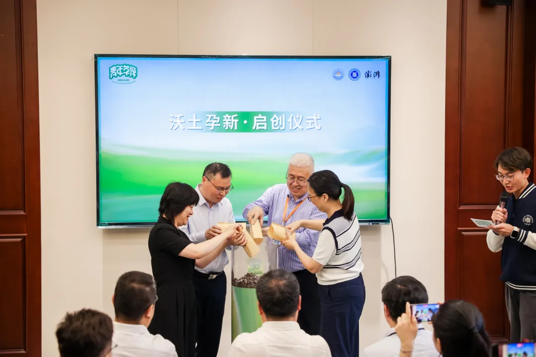 活动在“沃土孕新”启创仪式中拉开序幕。复旦大学计算与智能创新学院、市工商联、杨浦区工商联、澎湃新闻四方代表共同为“种子邀请函”注入四色沃土,象征科研基因、政策支持、区域资源和传播声浪四维推动,共同赋能创新环境,协同共建优质创业生态。