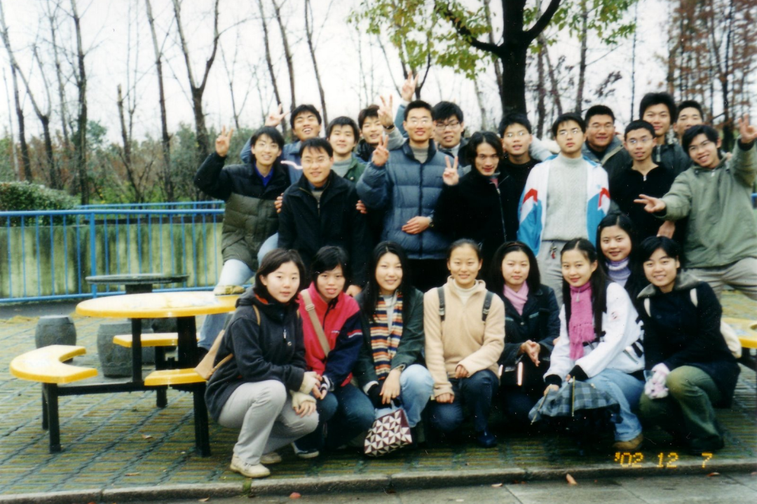 2001级软件学院是一个特殊群体。那时候80名同学来自复旦大学不同的院系,有数学系、力学系、化学系、药学院、网络学院等等、因为有了一年多的本科生活,所以在02年大家聚在一起的时候,其实已经有了各自原院系的烙印。另外一面,各自同学的交际圈不限于本院系,朋友圈的交际有更多更大的链接。老大(臧斌宇院长)在毕业赠言中写到“平时,你们自成一体,自娱自乐,这在软院的所有班级中也是非常独特的”,我们各自有n个小团体,但又彼此交融。就像二进制0和1的数字一样可以组成,形成了无限的可能。