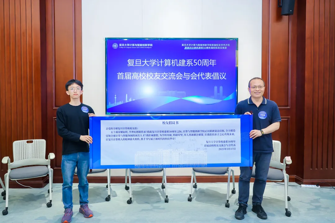 随着前两场圆桌论坛的圆满结束,此次高校交流会进入了一个特别的环节——《复旦计算机建系50周年校友倡议书》发布。